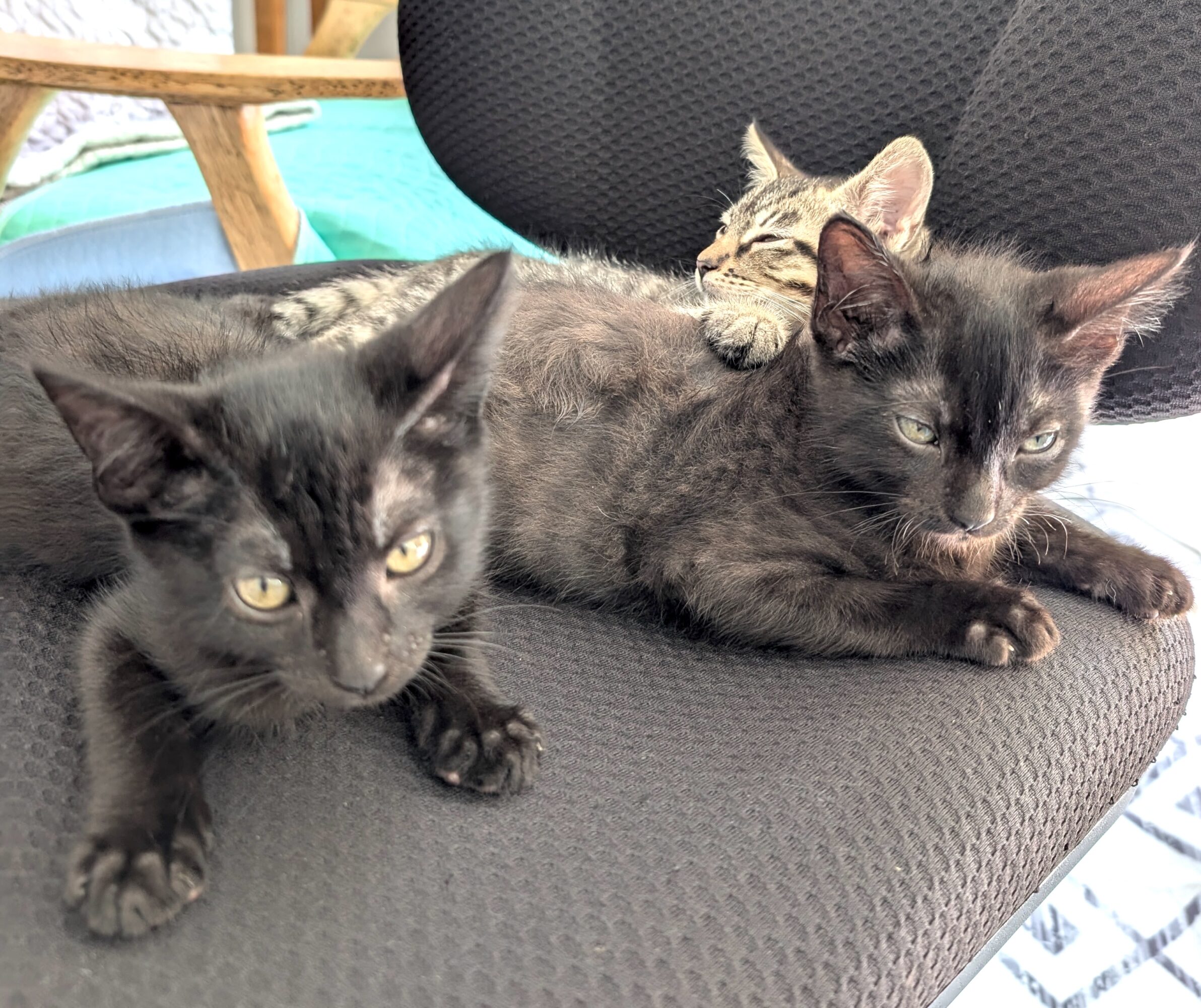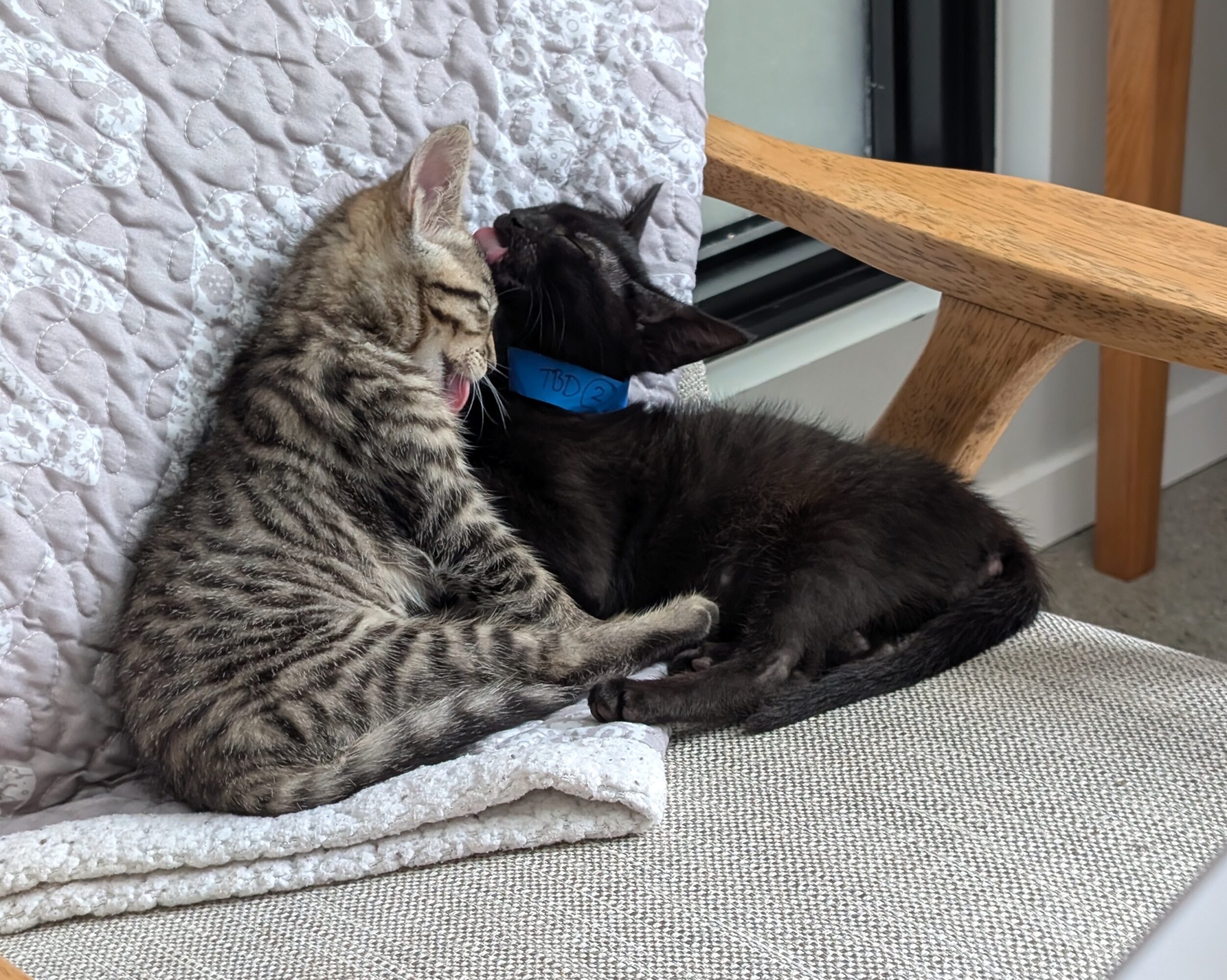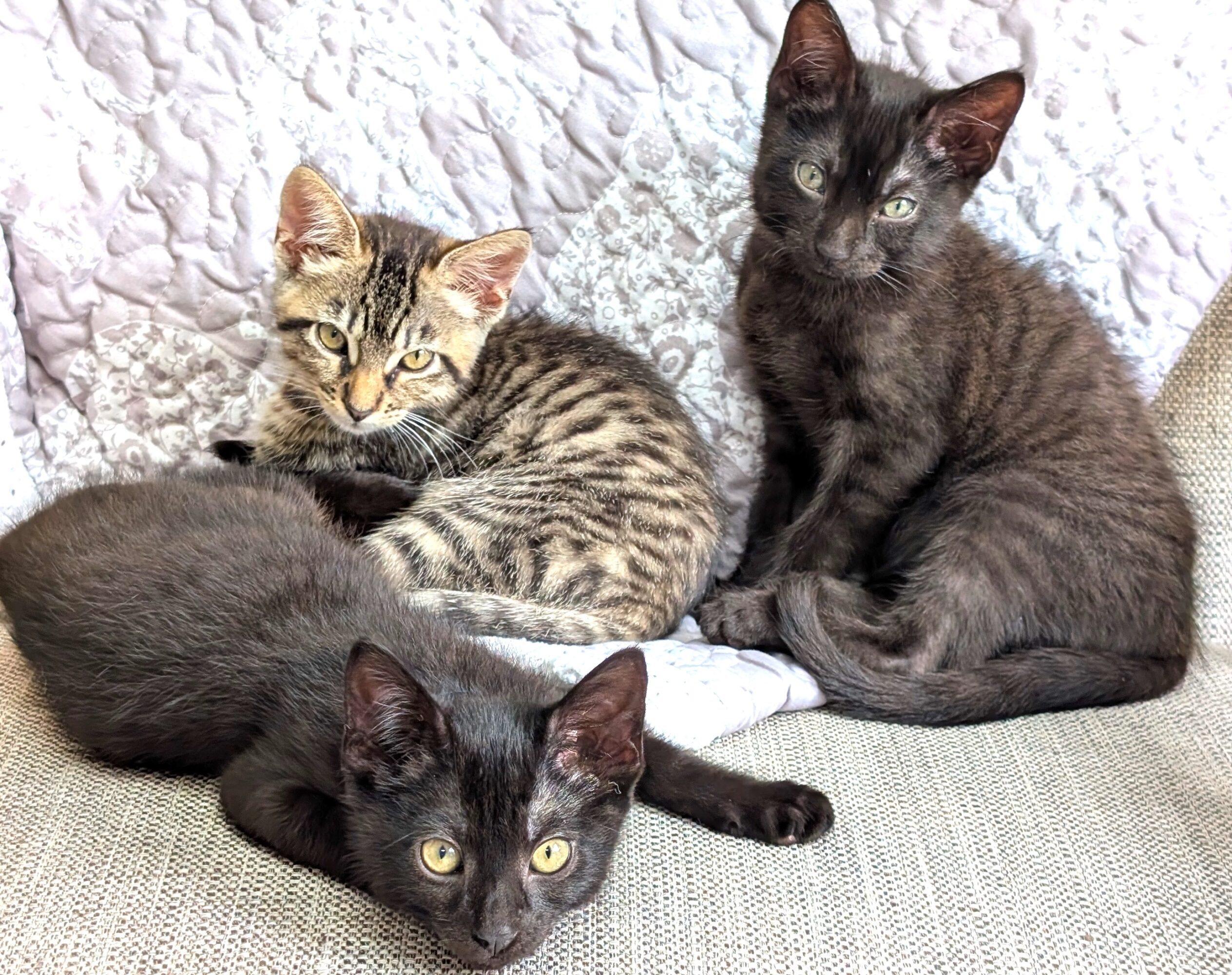 Think of us as your very own Sesame Street crew! We each have our own unique purr-sonalities, but we share hobbies such as playing, wrestling and chasing toys! When we’re all tuckered out, we’ll happily curl up for some cozy cuddles. Adopt one of us for some extra fun, or take home a pair so you can have a whole street full of joy! Great additions to any kitten-appropriate homes!