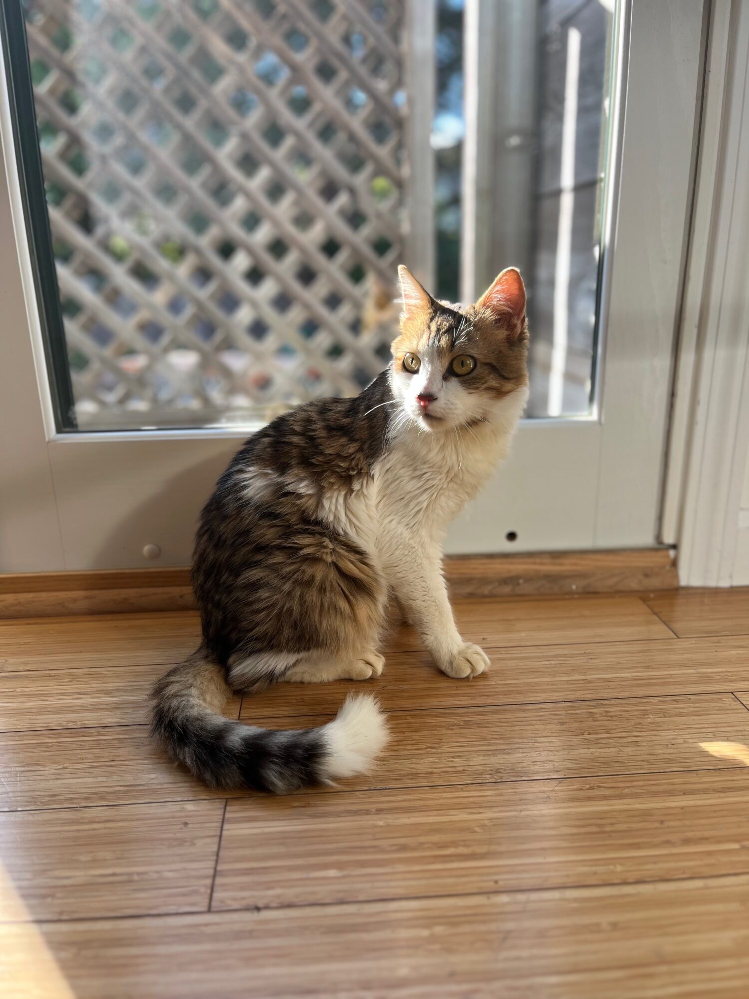 I’m a fun kitty who loves action and adventure! My simple pleasures include receiving pets, sleeping by your side, and warm cuddles. When I’m feeling active, I enjoy playing with cat wands and scratching and climbing cat posts! Give me some churu as a sweet treat and I’m going to fall in love with you! Let’s be best friends soon!