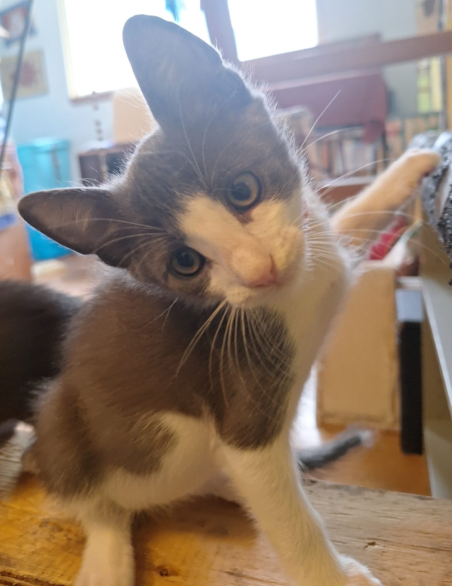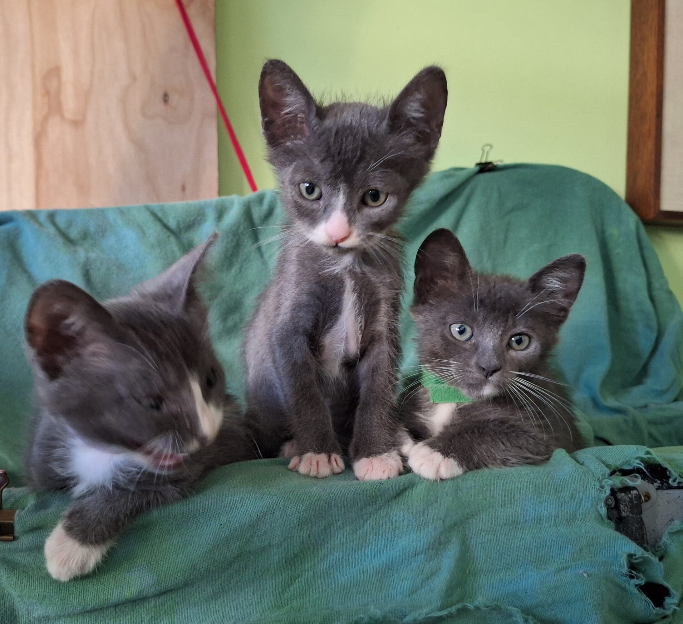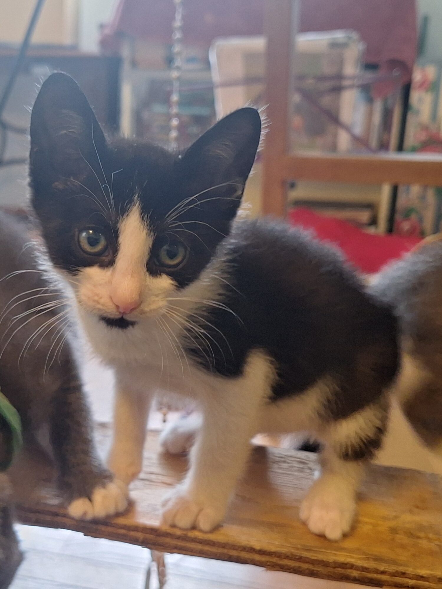 Hello, we’re Chai (female, grey w/white), Java (male, grey w/white), Cocoa (male, grey w/white), Sake (female, grey w/white), Toddy (male, black w/white), and Cider (female, black w/white)!