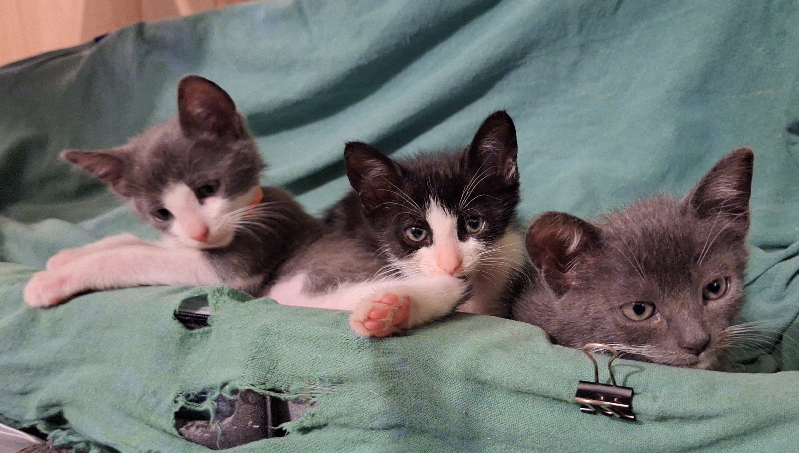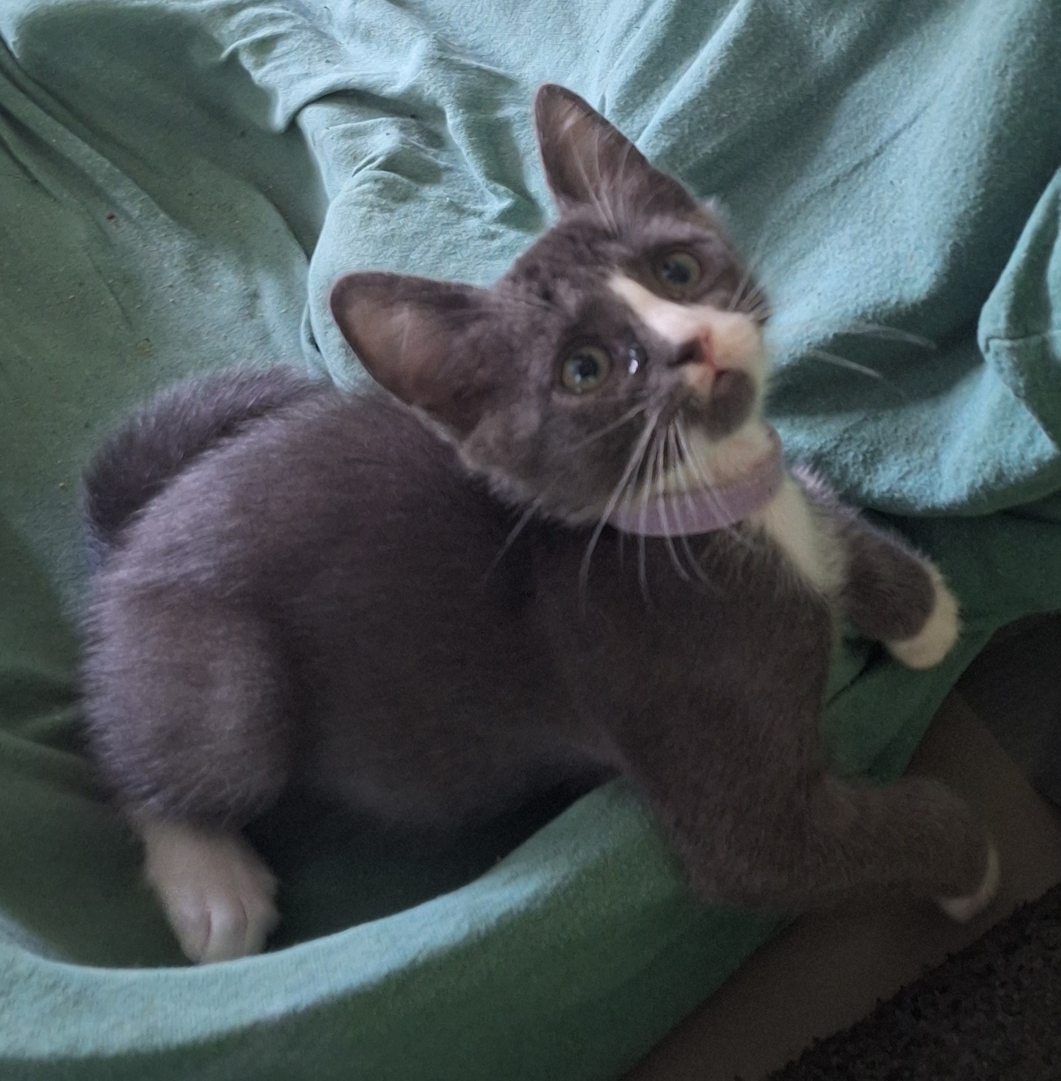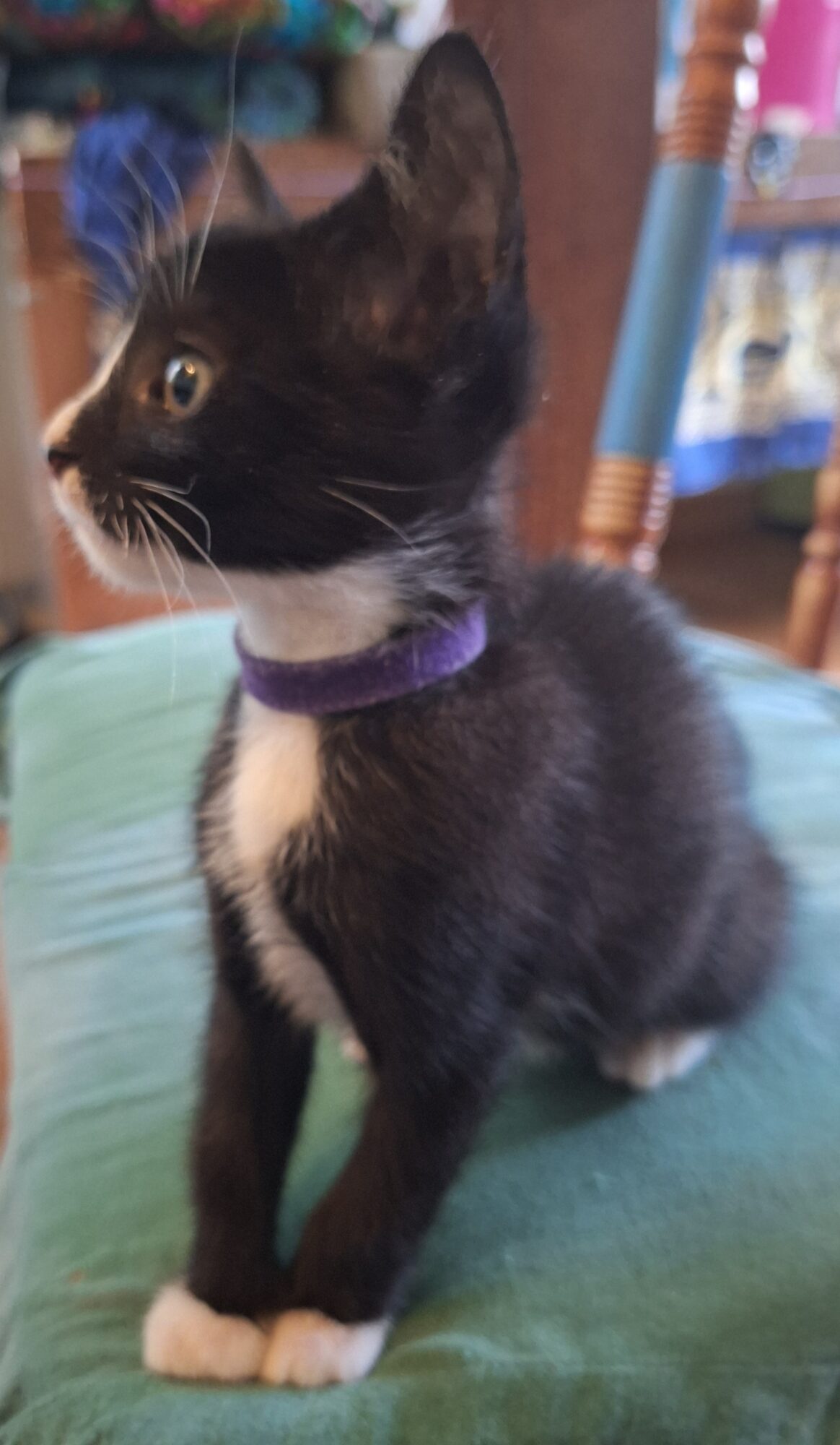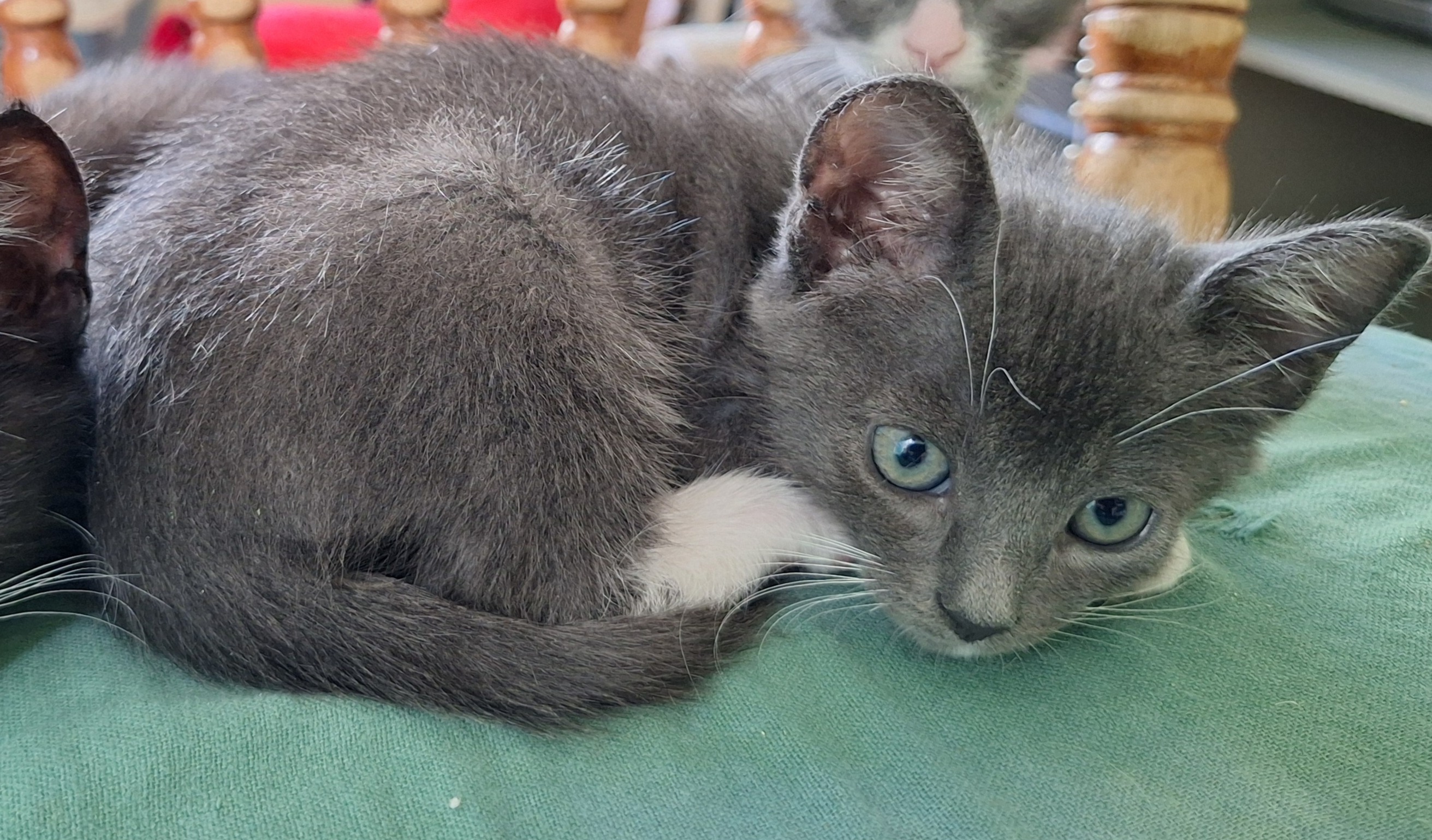 Hello, we’re Chai (female, grey w/white), Java (male, grey w/white), Cocoa (male, grey w/white), Sake (female, grey w/white), Toddy (male, black w/white), and Cider (female, black w/white)!