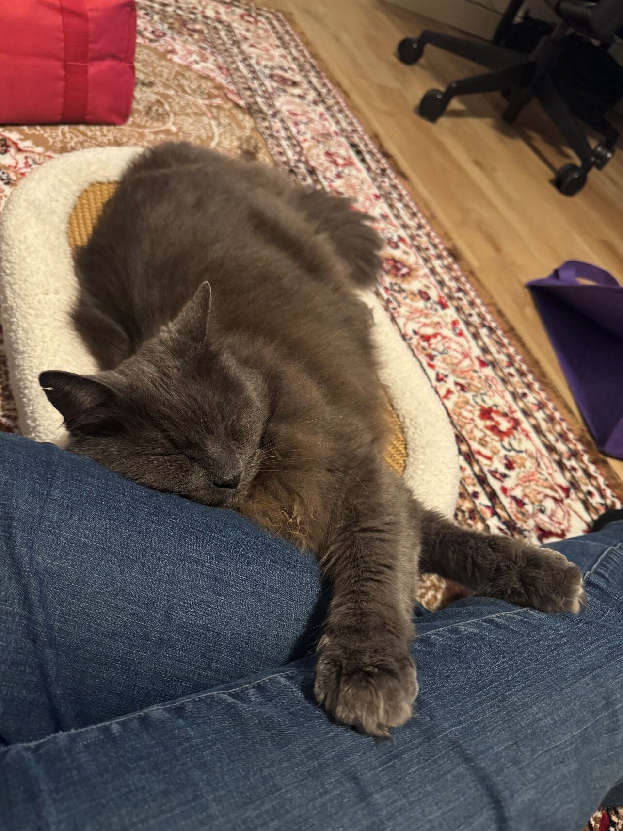 A note from my foster: Kismet is a big, chunky kitty full of love. He is a sleepy boy who appreciates a good lap to sleep on during the day (demanding pets from all available hands) and a little playing in the afternoon. When not sleeping, he is a curious kitty who likes to explore new rooms and watch things from the window to keep himself mentally engaged.