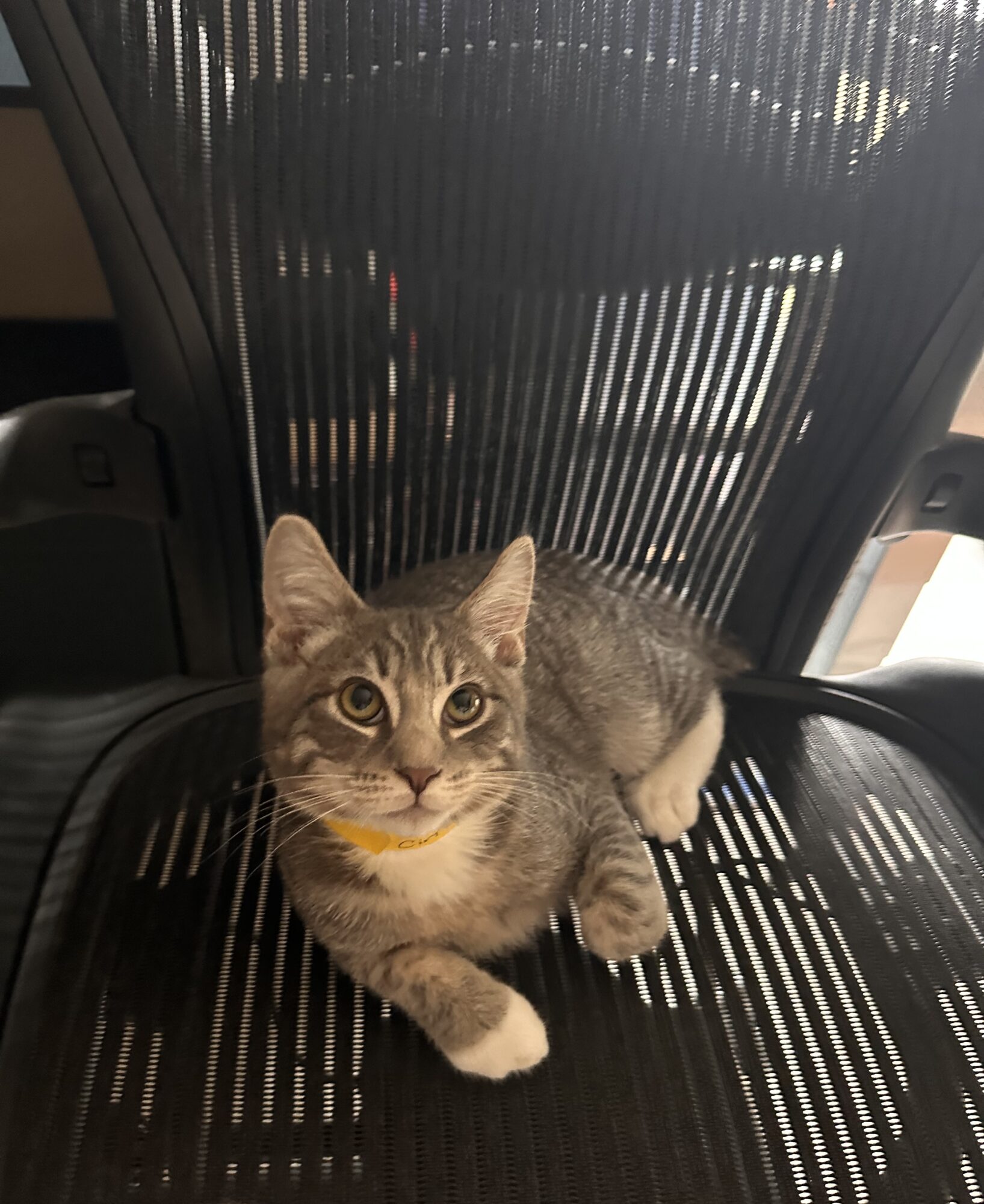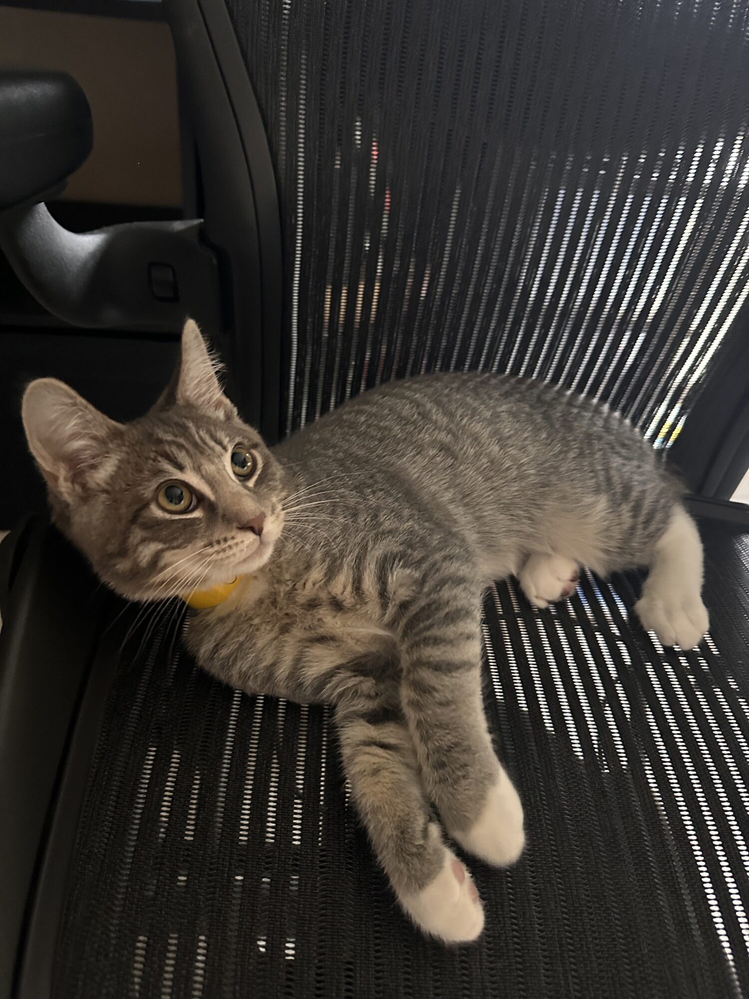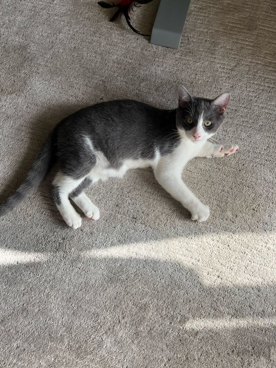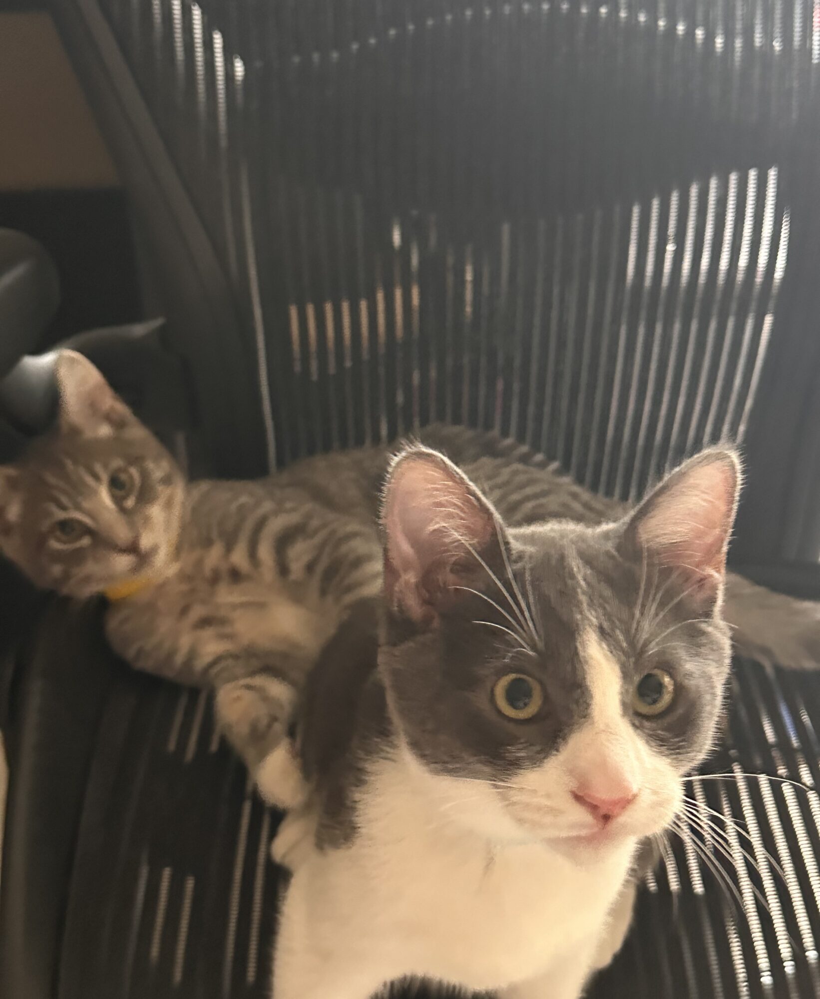 Hi, we’re Nimbus (gray, male) and Cirrus (gray tabby, male)!