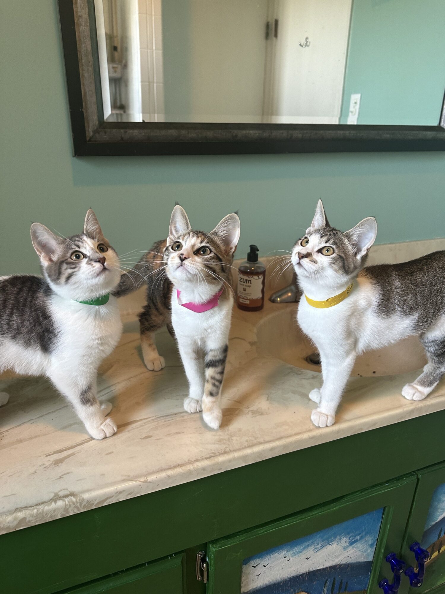 Hi, we’re Ophelia (female, grey tabby/white), Elizabeth Taylor (female, brown tabby/white), and Opalite (female, torbie/white)!