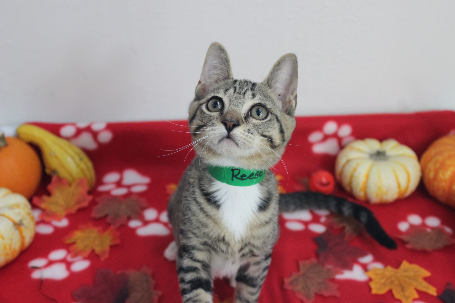 Hi, we’re Reeses (male, brown tabby), Kit Kat (male, gray/white), Snickers (female, brown tabby) and Twix (female, brown tabby)!