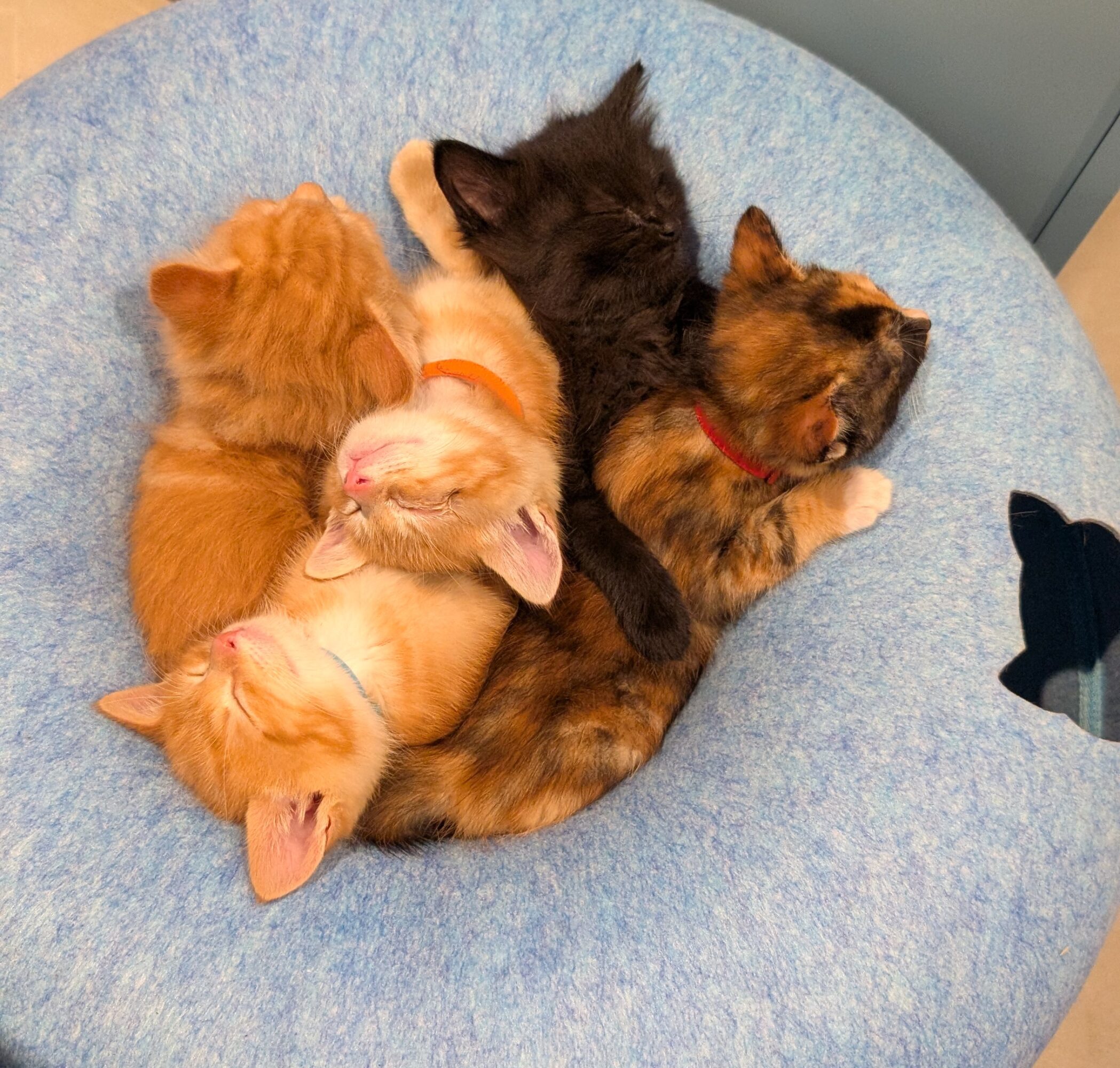 We’re a little pasta posse—al dente in energy, saucy in personality, and ready to be served up into your heart. We tumble and twirl through the day, chase toys, and cuddle together! Our purrs are warm and we’re always ready to add charm to your life. Adopt us so that everyday feels like a fancy dinner party! Adorable additions to any kitten-appropriate homes!