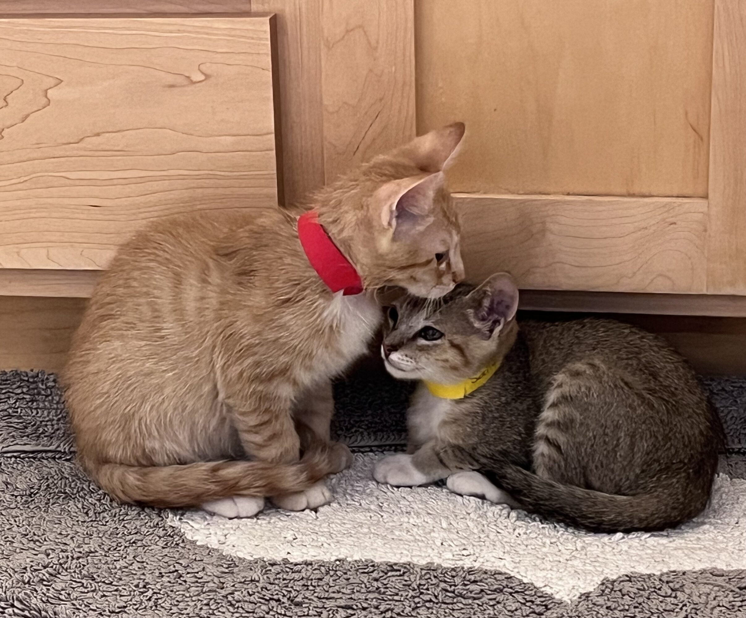 Hi, we’re Sally (female, sorrel ticked) and Jack (male, orange tabby)!