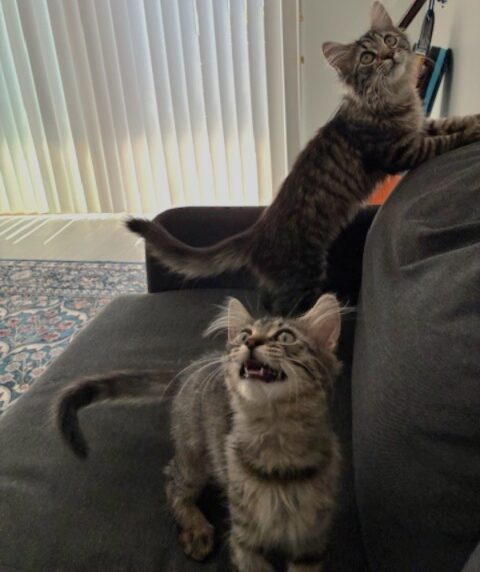 We’re a dynamic duo named after majestic mountains, and we’re ready to climb straight into your heart. Whether we’re scaling the tallest cat tree or tumbling around in a game of chase, life with us is never boring! Once we’ve had our fun, we’re just as happy to settle down for snuggles and purrs. Adopt us, and we’ll turn your home into our very own mountain paradise! Fun additions to any kitten-appropriate homes!