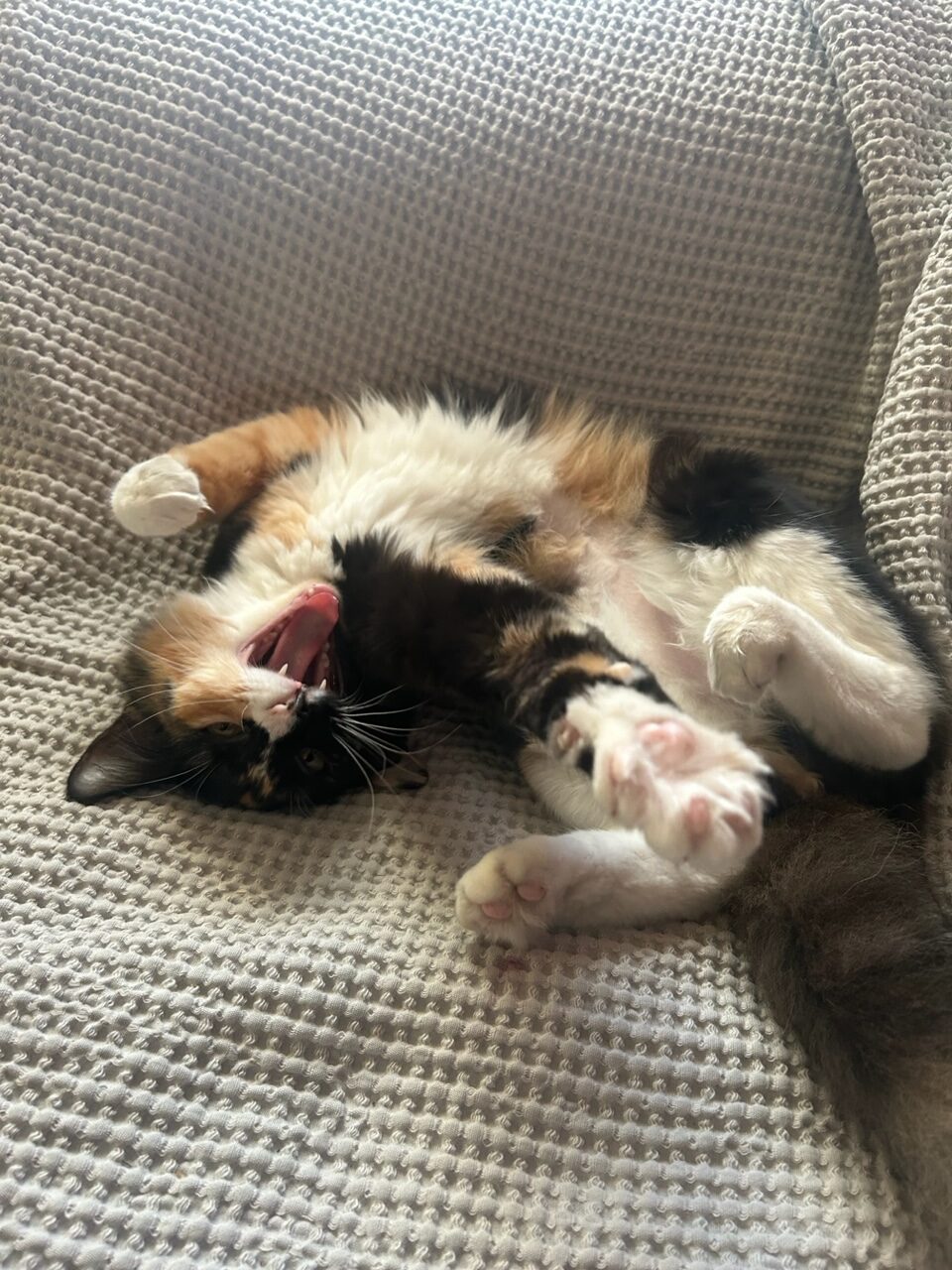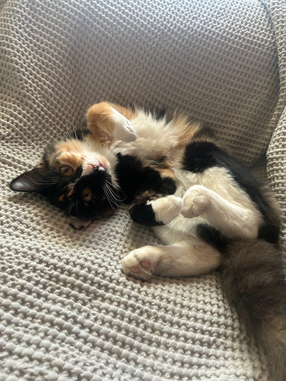 Everybody I meet is a new friend, and you could be my very best one! I love to spend my time with people, being pet or just curling up in a lap. Even though you can often find me sprawled in a patch of sunlight, don’t be fooled- I’ve still got plenty of energy to chase a toy or two! If you’re looking for a gorgeous, sweet companion, I’m your girl.