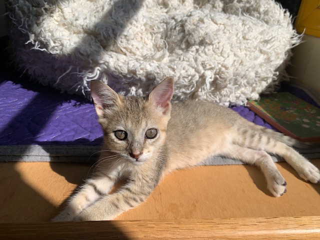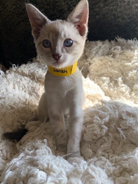 Hi, we’re Winifred (female, fawn ticked), Mary (female, brown tabby), and Sarah (female, lilac point)!