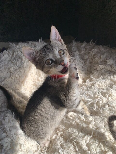 We’re a playful trio of kittens ready to fill your days with laughter, love, and plenty of purrs. We’re curious, cuddly, and always up for an adventure — whether that’s chasing toys, wrestling with each other, or curling up together for a cozy nap pile. Each of us has our own little personality, but we all share one big goal: finding our forever homes!