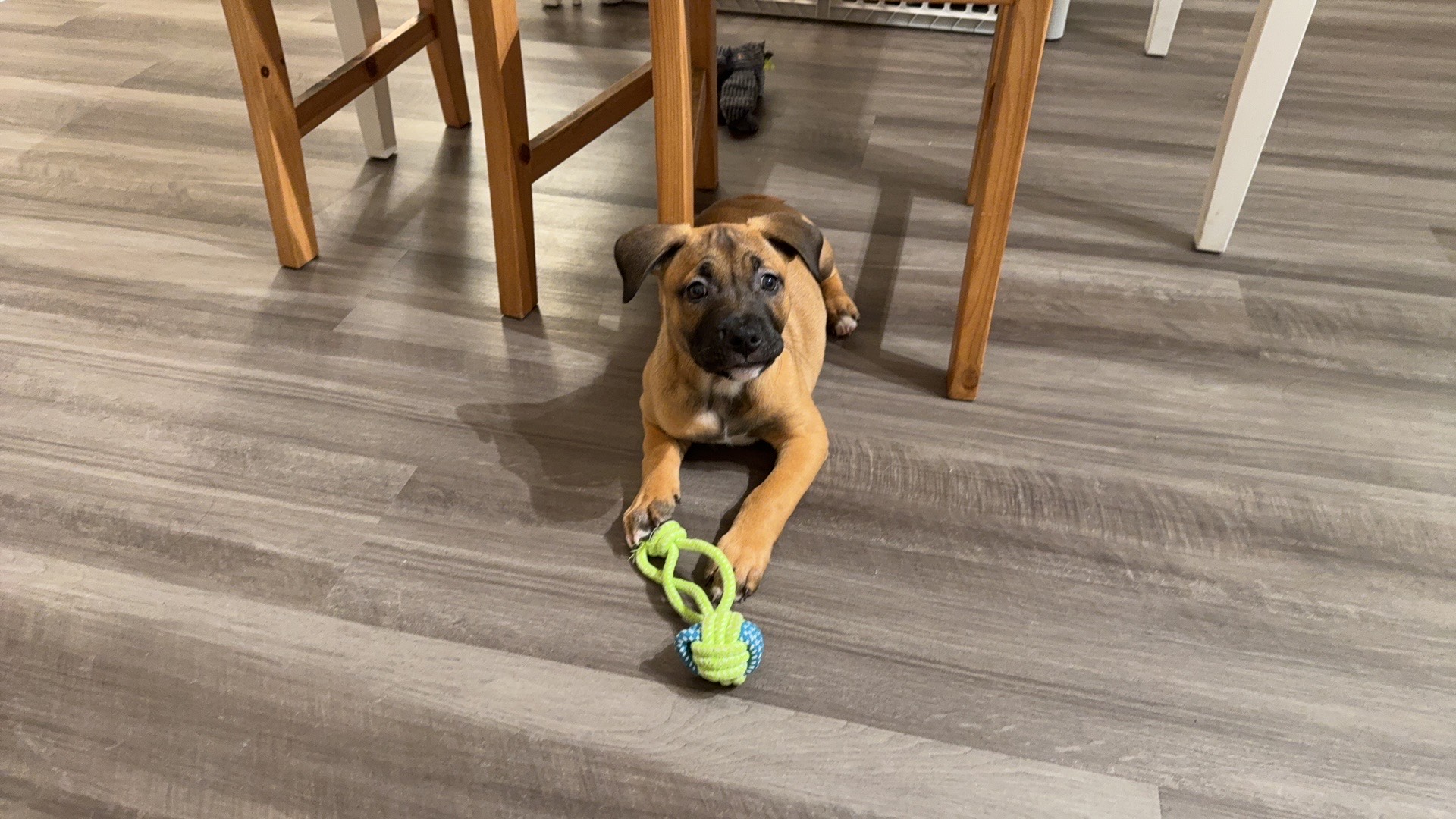 I’m a puppy with big paws, a soft heart, and lots of growing left to do. I’m still figuring out the world one sniff at a time, learning new things every day, and perfecting my nap schedule in between adventures. I love exploring, playing, and making people smile just by being my goofy, curious self. I may be named Bunny, but I hop you’re ready for lots of tail wags, zoomies, and hare-raising levels of cuteness. I’m all ears when treats are involved, quick to bounce into mischief, and always down to hop into a cuddle. With some puppy training, I’ll always be your favorite Bunny, no carrots required. Great addition to any large breed puppy appropriate home!