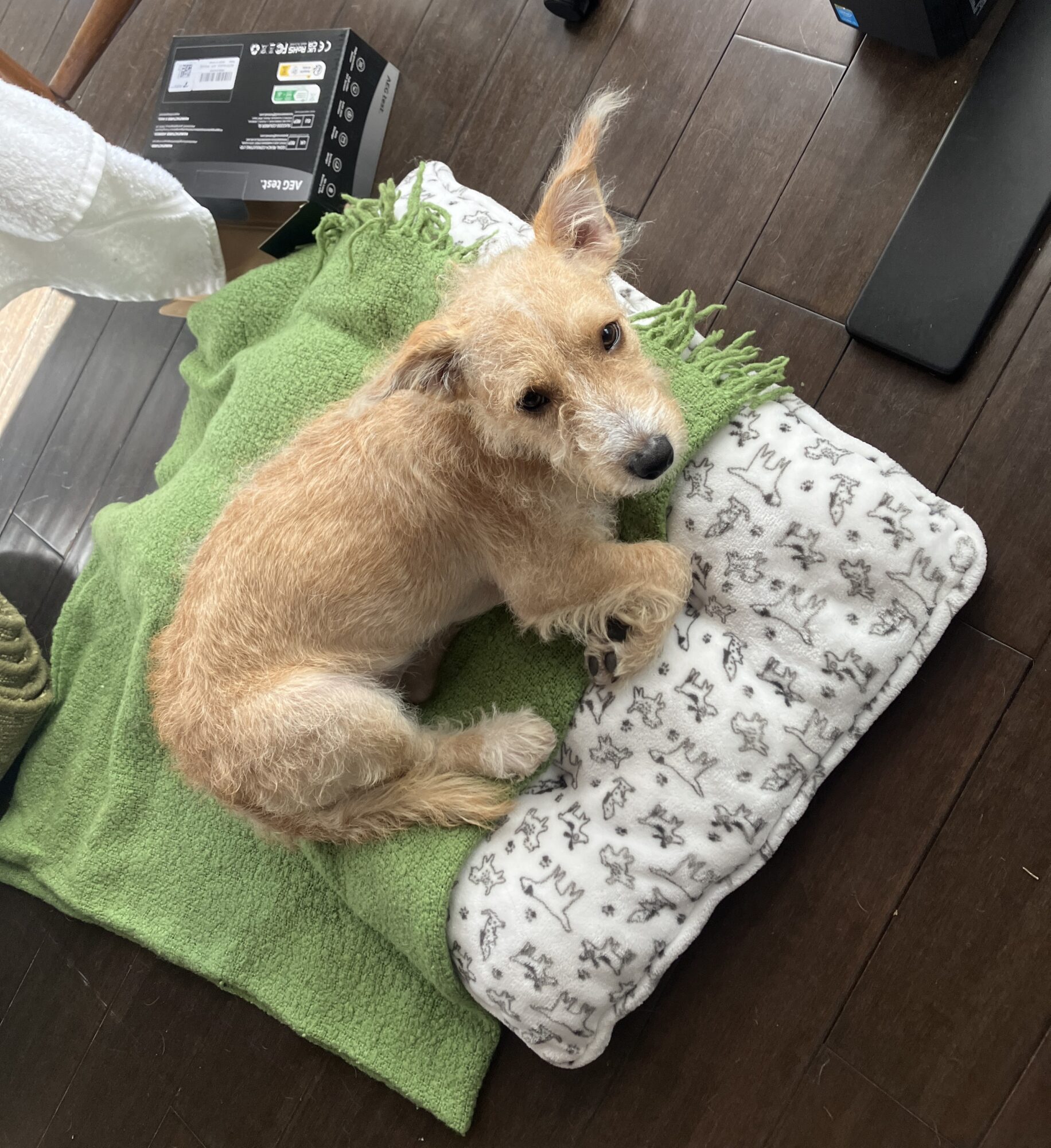 Your future best friend, professional snuggle bug, and part-time goofball. I’m an older puppy, which means I’ve got that perfect mix of playful zoomies and “let’s chill on the couch” energy. I love meeting new people, making dog friends, and showing off my ongoing puppy training. My favorite hobbies include squeaky-toy concerts, neighborhood strolls and giving the kind of cuddles that make your stress melt away…Wocka wocka!